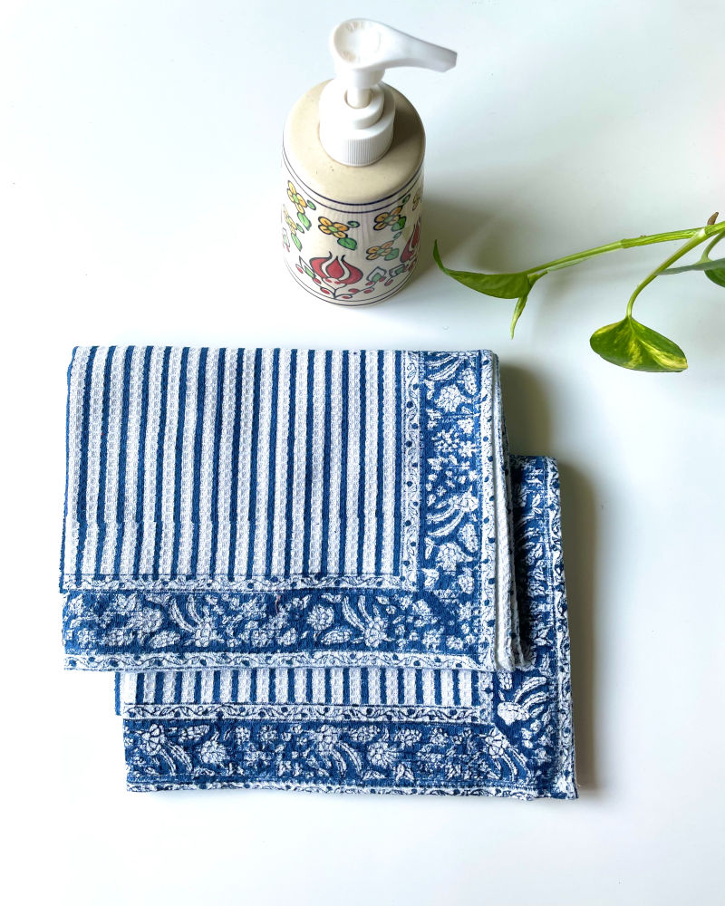 HANDBLOCK PRINTED HONEYCOMB HAND TOWELS (SET OF 2)